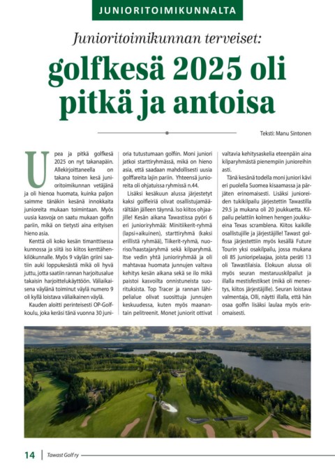 U pea ja pitkä golfkesä oria tutustumaan golfiin. Moni juniori Teksti: Manu Sintonen