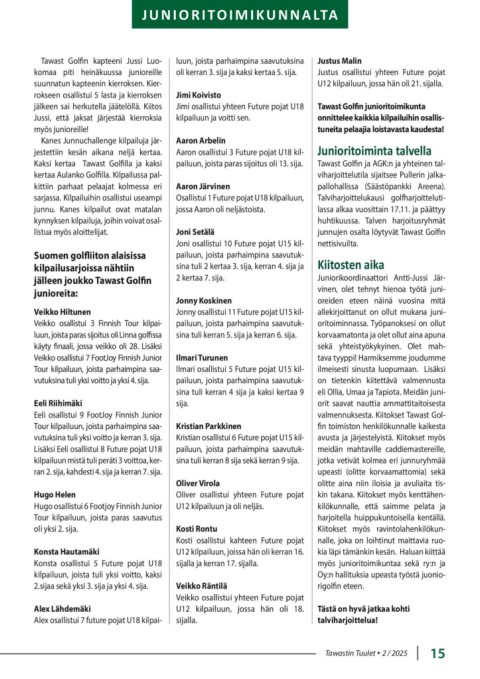 junnu. Kanes kilpailut ovat matalan junnujen osalta löytyvät Tawast Golfin
