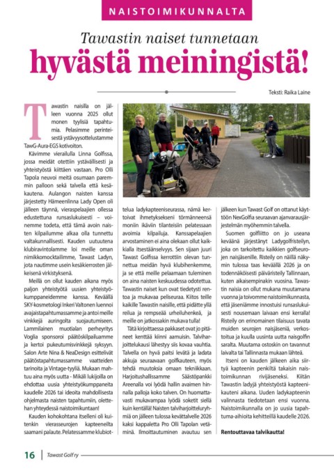 Tapola neuvoi meitä osumaan parem- Tawastin naiset kun ovat tiedetysti ren- min tulossa taas keväällä 2026 ja on