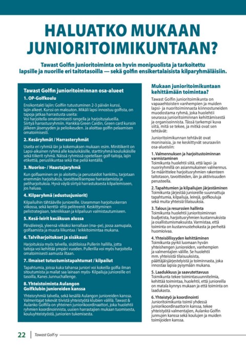 Tawast Golfin junioritoiminnan osa-alueet Mukaan junioritoimikuntaan