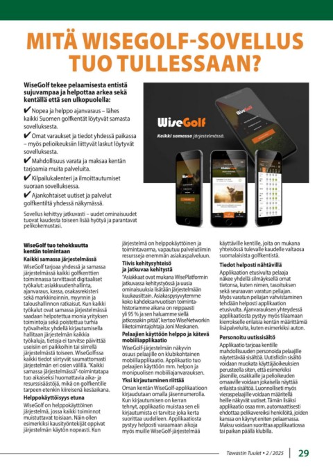 WiseGolf tarjoaa yhdessä ja samassa ja jatkuvaa kehitystä Tiedot helposti nähtävillä