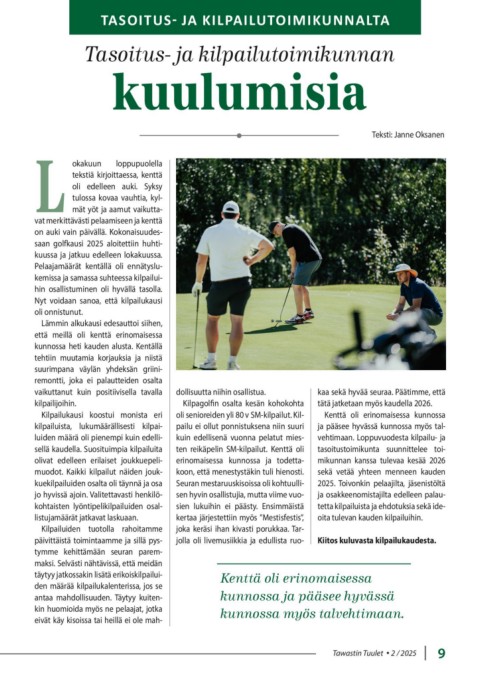 saan golfkausi 2025 aloitettiin huhti- erinomaisessa kunnossa ja todetta- mikunnan kanssa tulevaa kesää 2026